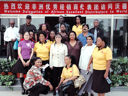 Après cette cérémonie d'accueille, nos distributeurs ont visité le Centre Logistique d'Outre-Mer de Groupe Green World, y compris la Salle d'Exposition des Produits et de l'honneur. Cependant ils ont hautement apprécié la technologie des recherches et développements avancée, les équipements modernes de la production et le standard du management, et se sont faits photographier en groupe.