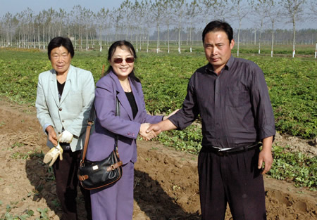 L'automne d'octobre arrive avec la fraîcheur de la brise, Dr. Li Deming, présidente de, avec sa délégation des départements de la production, de la R&D, et du design, ont visité la base de la plantation. En vue des matières premières pour la production en 2009, ils ont eu une inspection et une discussion stratégique sur l'expansion de la superficie cultivée, la sélection des matières, et d'autres problèmes relatifs à la production.