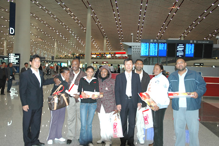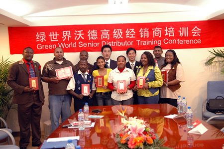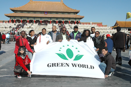 Le 21 octobre 2008, la délégation de 9 distributeurs de Green World Afrique du Sud, R.D.Congo et Namibie est arrivé à l'aéroport de Beijing, Capital de la Chine, où ils souhaitaient y voyager depuis longtemps. Monsieur JI Yansheng, Directeur du Département du Service d'outre-mer, et Monsieur WANG Jianquan, Manager d'outre-mer ainsi que d'autres membres de Green World ont accueilli chaleureusement les hôtes.