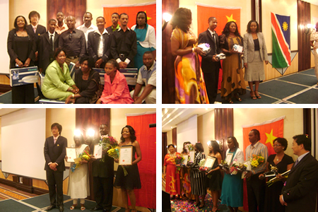 La cérémonie a commencé avec la voix haute et sonore les hymnes nationaux de la Namibie, de la Chine et des États-Unis. Tout d'abord, Mme Hertta IITA a donné un discours de bienvenue, a exprimé sa gratitude au Vice-président M. Zhang pour son soutien constant et sa préoccupation pour le marché en Namibie et sa reconnaissance à ses membres de l'équipe pour la réalisation qu’ils ont eue pendant un an et demi passé.