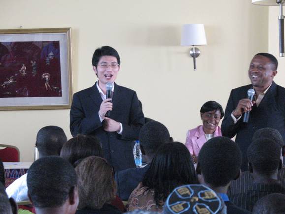 Monsieur Obiora et Monsieur Justin Kenang, deux leaders du système, ont l’un après l’autre présenté aux participants l’histoire et le plan de business de, en particulier, il convient de mentionner que, l’ordinateur portable, le projeteur, le logiciel PPT, tous appartiennent au système ! Cela a montré la capacité puissante du système !