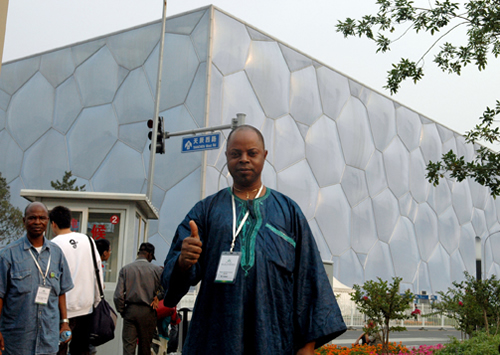 A trois heures d'après-midi, les distributeurs excellents africains sont arrivés aux endroits des Jeux Olympiques---le nid d'oiseau et le cube d'eau.
