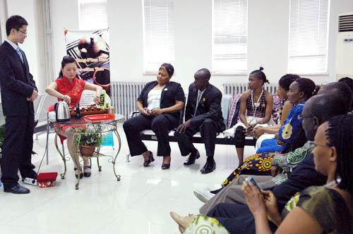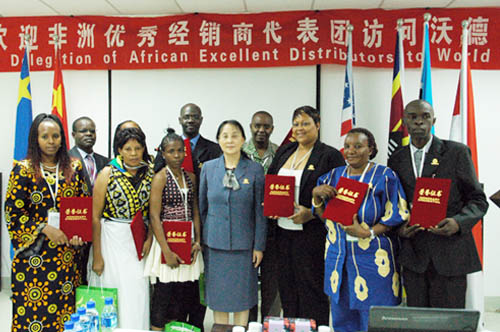 Le 16 octobre, dix distributeurs kenyans et tanzaniens ont suit une formation sur les produits dans notre société. La présidente Dr.Deming Li leur a accueilli et a fait un discours bref. Dans le discours, Dr.Deming Li a explicité la bonne situation des affaires et a posé l’espérance sur les distributeurs. Cette formation est chargée par le département de formation. Avec la formation stricte et excellente du chef Mme Michelle et tous les maître-assistants, les distributeurs présentés ont senti la spécialité et l’esprit sérieux. Le contenu de cette formation contient principalement les séries du Bleuet, les séries des produits de soin d’acuponcture chaleureuse ainsi que l’Abaissement de lipidémie Thé. Par cette formation, les distributeurs ont fait une connaissance plus profonde sur les produits et auront plus de la confiance sur les produits de Green World. Pendant la formation, on a présenté l’art du thé traditionnel. Par cette méthode légère et agréable, en racontant la culture chinoise du thé, on a explicité aussi l’effet du thé du Green World. Cette formation a obtenu un effet meilleur.