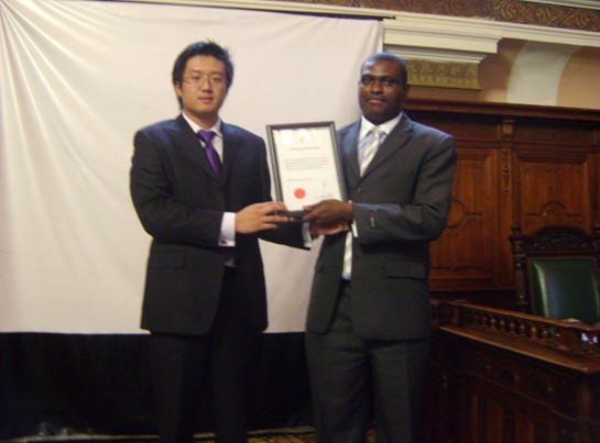 La cérémonie de décerner le prix a suivi: Jony Yu, directeur de Green World L’Afrique, a décerné la licence d’autorisation d’exploitation à M. David Cletus, chef du Pretoria de Centre de Distribution. M. David Zhang a décerné le certificat de Green World Ambassadrice à Mme Sibongile Nkomo. De plus, quatre distributeurs ont obtenu DVD, le prix de la croissance rapide et cinq distributeurs ont obtenu le certificat d’honneur de Green World.