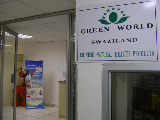 Le 26 février 2010, M. David Zhang, vice-président de Green World et président de la Zone africaine du Green World, dans l’accompagne de M. Mrs.Hlashwayo Olga qui est dirigeant supérieur de réseau de swaziland, a inspecté le centre de marketting à Mbabane, capitale de Swaziland. C’était un autre centre de markerting suivant le premier centre de marketing.