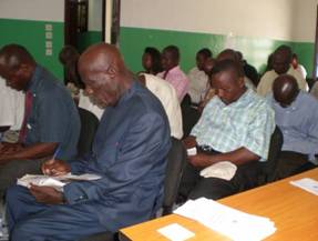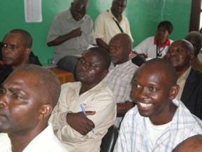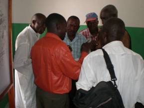 (Mr.THEOPHILE fait la faormation)                      (Les distributeurs notant avec soin)
