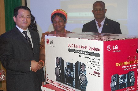 Dans cette ambiance chaleureuse, Monsieur YAO KAMAL BRIGHT(ID:30000000), représentant des distributeurs ghanéens, a pris le parole d’encouragement cequi mobilise l'enthousiasme des distributeurs une fois de plus. Ensuite, Madame Li Yun, manager de la filiale de Lagos, et Monsieur Bao Jianfeng, manager de la filiale d’Abuja, ont décerné le prix de voiture luxueuse et le certificat d’honneur aux deux managers deux étoiles et leur ont offert réfrigérateur en tant qu’encouragement. Enfin, le moment le plus excitant, Monsieur le président David Zhang a décerné le prix de manager trois étoiles, un climatiseur et un téléviseur à cristal liquide à 42 pouces aux Madame ELECHI IJEOMA THERESA et Madame UZOUNIN NGOZI, cela a causé l’envie infinie et les applaudissements chaleureux de tous les distributeurs, l’atmosphère du hall est aussi parvenue à un point culminant.