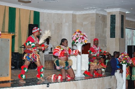 Monsieur SHAKARA, présentateur célèbre de Nigeria, a été invité à présider cette conférence. Après la danse enthousiaste locale, avec la musique de fond passionnée et les applaudissements chaleureux des distributeurs, Monsieur le président David Zhang est entré au hall de conférence avec les officiers locaux, les managers des filiales et les distributeurs supérieurs. Après les hymnes nationaux nigérian, chinois et américain, Monsieur le présentateur SHAKARA a annoncé que la conférence de Prix de Voiture de Green World Nigeria en 2010 a formellement ouvert.