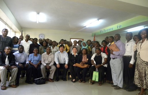 Le soir du 21 novembre 2010, Madame Wang Qian, chef du secteur de formation de la zone africaine de Groupe Green World, est arrivée à l’aéroport international de Nairobi de Kenya et a commencé les cours de formation de presque dix jours à Green World Kenya. Madame le chef Wang, invitée par Monsieur Mars Du, manager général de la zone de l’Afrique du Nord-Est de Groupe Green World, est spécialement venue à Nairobi du quartier général de la zone africaine à Johannesburg pour renforcer les connaissances sur les produits et la capacité de développer le marché des distributeurs de la zone de l’Afrique du Nord-Est. Monsieur Mars Du et Monsieur Jerry Sun, manager du secteur financier de Green World Kenya, ont chaleureusement accueilli Madame le chef Wang à l’aéroport international de Nairobi.