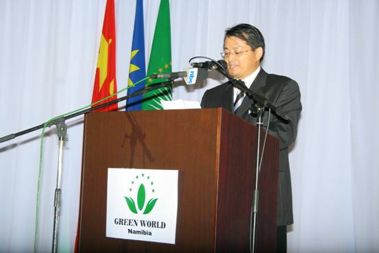 Après la déclaration d’ouverture de la conférence par le MC, M. Remind, animateur de télévision bien connu en Namibie, M. William Zhang, directeur général de Green World Namibie a fait un discours de bienvenue à tous les participants.