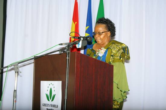 Avec une ovation levée de tous les spectateurs, Mme. Penehupifo Pohamba, Première Dame de la Namibie, est montée sur la scène dirigée par l'huissier. Elle a fait un discours enthousiaste au nom du Président en encourageant tous les distributeurs à faire plus de succès. Mme. Penehupifo Pohamba a remercié Green World pour la contribution d’améliorer la santé des citoyens namibiens et les efforts d’assumer les problèmes de chômage avec le gouvernement. Elle a également remercié Green World de donner les 11 voitures et de nombreux différents prix en Namibie aux distributeurs travailleurs tout ce qui a témoigné le fait que Green World est une bonne société fiable que tous les distributeurs peuvent travailler pour elle toute la vie. Elle a aussi encouragé les distributeurs à continuer à travailler dur et a exhorté ceux qui n'avaient pas encore adhéré à Green World d’en faire partie pour une meilleure santé et une liberté financière.