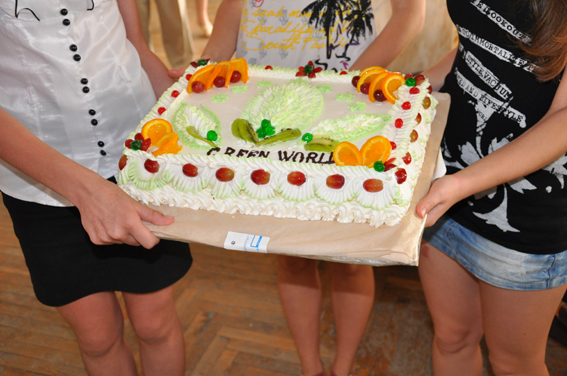 Le gâteau d'anniversaire avec logo de Green World commandé spécialement par les distributeurs.