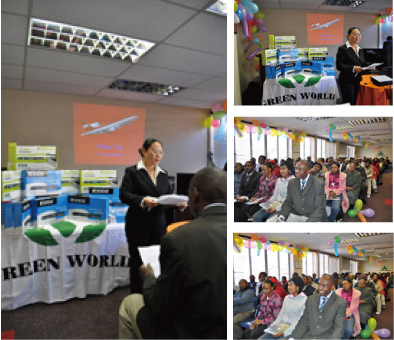 Le 18, juin, 2011, l'Afrique du Sud est complètement entré dans l’hiver, mais le froid ne gèle pas l'enthousiasme des distributeurs de Green World. Aujourd'hui, le 4ème anniversaire de fondation de Green World l’Afrique du Sud a eu lieu solennellement dans la salle de formation de la filiale Johannesburg. A peu près 200 distributeurs supérieurs ont participé à cette cérémonie.