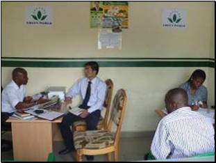Afin de comprendre les conditions de la fonction du marché de la ville Calabar et les villes environnants au Nigeria de Green World. Et donc pour faire une stratégie gestionnaire qui correspondre aux besoins du marché et assurer les fait de vente se développer stable. M. Zhaoyu Zhou, le directeur stagiaire et le directeur informatique,il a visité tous les boutique spécialisé de Calabar du 23 au 24 juin,2011. Visitant, il a écoute les conditions de tous les points qui donnent par les boutiquiers et les distributeurs, il a fait une conclusion et un enregistrement avec soin.