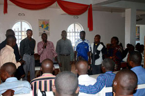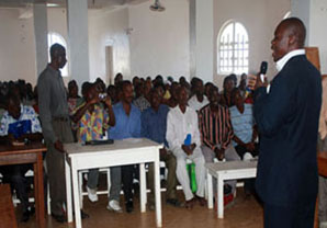 La conférence a commencé officiellement à 9 heurs du matin, Mme Mary, le distributeur du département compter au Congo-Kinshasa, WELCOME, l’assistant du marché, ATHANASE, le maître de conférence nationale, et les distributeurs plus de 400 ont participé cette conférence qui vient des pays de Uganda, Sultan etc. Grâce à Manasse, le patron local du magasin, il a présidé avec ému et humour, les applaudissements et les sourires de distributeurs ont continu.