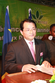 la Chine et les états-unis. Il a remercie les chaleureux de distributeurs de Congo-Kinshasa de Green World de des ans et a introduit les réussites de Groupe Green World et les rêves du développement de la future société. Ensuite, monsieur Liangjun Zhang, le président, a monté à la tribune et fait un discours passionné. D’abord, le président Zhang a introduit les conditions du développement de Green World après entrer le marché d’Afrique, partager les résultats du développement rapide de des ans de la société de Nigeria, Afrique du sud etc. et expliquer la compétitivité économique centrale de groupe Green World. Le président Zhang a souhaité la filiale de Congo-Kinshasa de groupe Green World peut avoir un bon résultat. Les mots de président Zhang ont encouragé l’esprit combatif de distributeurs, il a applaudissement chaleureux à la bas de la scène. Les fonctionnaires qui chargent de la qualité d’alimentation et médicament de ministère de la santé a félicité la réussite de la conférence, et remercie la société qui a contribué aux affaires de développement d’entreprise de la santé au groupe Green World et les société responsable et observent les lois.