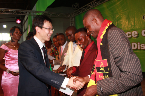 Plus de 400 cents distributeurs d’Angola sont en chantant et en dansant autour du lieu de la conférence pour féliciter leurs compatriotes d’avoir le prix et donné les cadeaux de présenter en soin et les vêtements nationaux au président Zhang. Après décerner le prix, le sentiment de tout le monde ne peut pas calmer. Tous les hommes ne se sont pas en donner à coeur joie et monté la scène pour prendre une photo après la présentateur a annoncé la fin complet de la conférence.