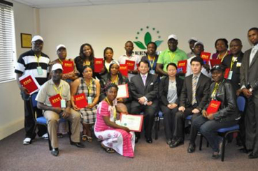 Le président Zhang a décerné les certificats d’honneur et les prix aux distributeurs excellent de Abuja et souhaite d’avoir un bon voyage en Afrique du sud pour les représentants de distributeurs après la fin du training.