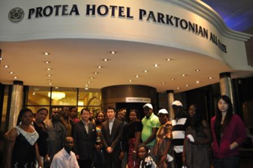A l’aéroport de Johannesburg, les distributeurs supérieurs de la filiale de Abuja ne peuvent pas contenu l’état d’âme ému et élevé la caméra pour souvenir les états d’âme pour enregistrer la belle cité de Afrique du sud. A 7 heurs du 11, l’équipe de représentants de distributeurs est descendue dans l’hôtel de Protea Parktonian, se situé à la centre de Johannesburg. Les accueils chaleureux de l’hôtel et les petit- déjeuner bon ont effacé les fatigues de voler en soir.