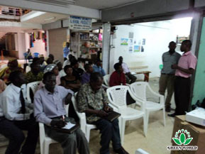 Les quatre hommes sont arrivés au magasin spécial de MBARARA en nuit après le training de 4 heures. Pendant la conférence et avant de la conférence, monsieur Terry, DR JOHN, M. EMMA et MR.ISAAC ont fait un discours et communication sur les informations du marché, changé des idées du marché et formé un nouveau projet de marché.