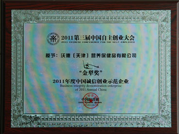 World (Tianjin) Nutrition et Santé Alimentation Co,.Ltd a gagné le prix de Jinli—la société de loyauté et modèle en Chine en 2011.