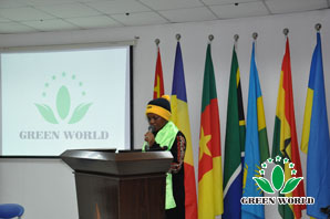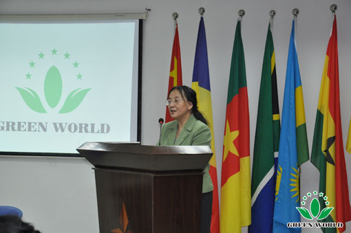 Mme Deming Li, le président de Groupe Green World, a fait un discours en la conférence d’accueillir les distributeurs.