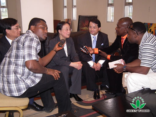 A ce jour-là, la région de la ville de Calabar est en soleil, dehors de la conférence de CULTURE CENTRE a foule énorme, et dans la conférence, toutes les places sont occupées. La central de télévision nationale, journal etc. sont réuni à la salle de repos de VIP avant de la conférence pour faire une entretien thématique de Dr Deming Li, le président de Groupe Green World, Monsieur David ZHANG, Vice-Président de Groupe Green World, Président de Green World Afrique, et monsieur Xifeng Lu, le président de la région de Asie de sud.