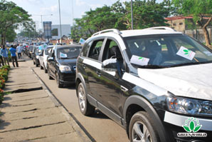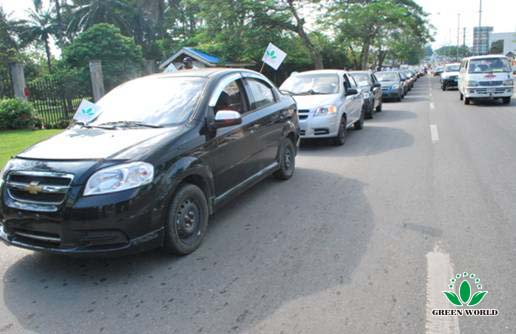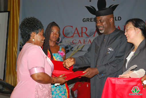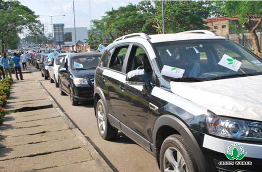 Un jour avant de faire la conférence de décerner le prix, avec la coopération de groupe Chevrolet, le partenaire commercial de GROUPE GREEN WORLD, tous les lauréats ont fait une manifestation autour la ville de Calabar avec guider de police, sur les voitures, il a les drapeaux de GREEN WORLD, tous les coins d’arriver des voitures ont les regards d’admiration.