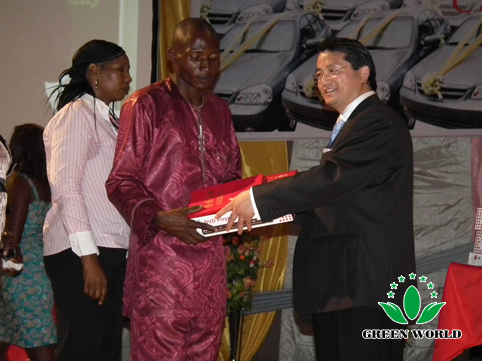 Et après, Monsieur David ZHANG, Vice-Président de Groupe Green World, Président de Green World Afrique, le vice –gouverneur de CROSS RIVER STATE et monsieur Xifeng Lu, le président de la région de Asie de sud et les participants de VIP ont décerné les prix de voiture aux lauréats un après l’autre.