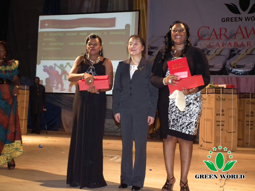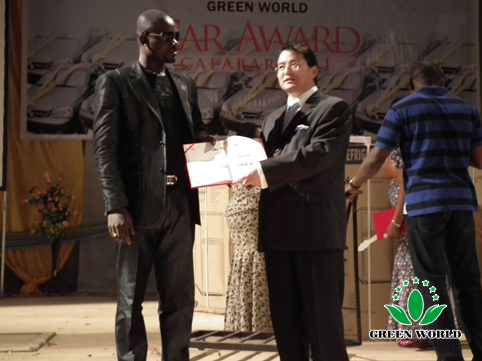 Les lauréats sont en chantant et en dansant avec le musique, et il a ovation et les applaudissements dans la place de la conférence, un distributeur a dit ému que il n’a nulle société en Nigeria et en Afrique de décerner 181 voitures commerciaux en un an et dans une foi, GREEN WORLD est une entreprise de avoir la valeur de lutter contre, est NO.1 dans notre cœur pour longtemps(le numéro un pour toujours). Et la conférence est une conférence sans rival.