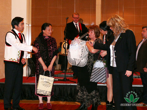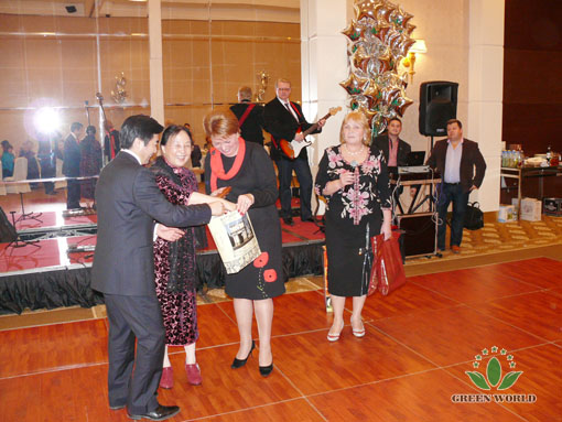 A 6 heures du soir, plus de 100 distributeurs ont participé le bouquet en soir dans l’hôtel, les chefs de tous les pays ont donne les cadeaux au président Li pour exprimer leur sentiment. Et après, tous les hommes ont en chantant et en dansant pour célébrer la fête ensemble.