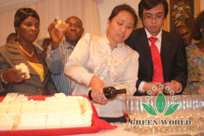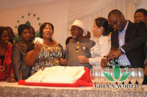 A la fin de la conférence, les employés de la filiale Calabar ont tien le gâteau d’anniversaire à la scène, les personnes de gestion de la filiale Calabar, les représentants de distributeurs supérieurs et les patrons de magasin spécial ont montré la scène après l’invitation de présentateur, tous ont chanté la chanson et coupé le gâteau ensemble et célébré l’anniversaire de un an de la filiale de Calabar et souhaité de grandir de la filiale de Calabar de Green World et eu une entreprise plus brillant.