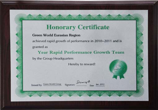 Le siège de GROUPE GREEN WORLD a décerné équipe de brillant exploit d’agrandir rapide de 2010-2011 à la région d’asie-europe de GREEN WORLD.