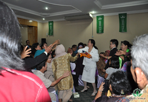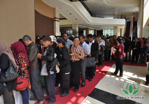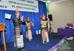 Sous l’invitation des concessionaires de Medan ,président Li, directeur Xiao et Tony ont assisté à cette réunion d’exaltation ,les concessionaires venant l’équipe MARYADY et l’équipe HAJIDAH suspendent une carte de bienvenue aménagées avec les fleurs à l’entrée. Tous les concessionnaires sont arrivés ,ils nous présentent leur soutien et confiance sincères à Groupe Green World à travers leurs actions.