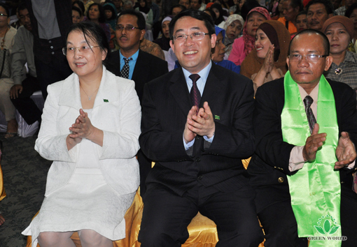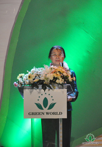 Madame le président Li Deming a dit que c'est la quatième fois que j’aie assisté à cette réunion à Medan ,je suis contente d’avoir rencontré encore une fois mes anciens amis ,elle promet à tous les concessionnaires que Groupe Green World insiste sur trois inchangées : inchangée du regime , inchangée des produits , inchangée du coeur de Green World . Green World va introduire une série de produits de haute qualité et hauts efficaces ,récupérer les produits que les concessionnaires aiment.