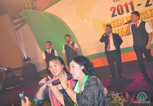 Cette réunion a aussi invité une combinaison de danse connu dans la région locale ,ces spectacles ont poussé l’atmosphère sur place à l’apogée . Tout le monde danse sur scène ,Président Li et directeur Xiao sont aussi invités à danser avec les concessionnaires , c’est vraiment inoubliable .Cette réunion s’est terminée dans l’atmosphère animée etchaleureuse .Espère les concessionnaires semer les graines plus loin , la cause de Green World couvrir l’Asie du Sud-Est ,laisser plus de gens bénéficier de Green World.