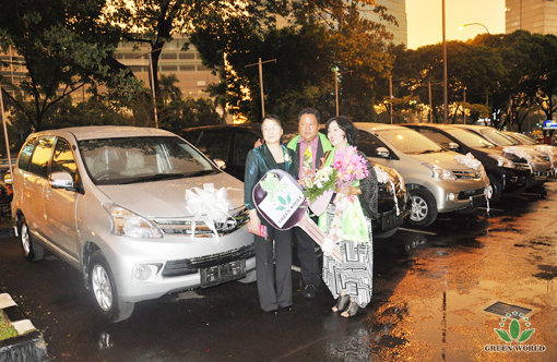 Lauréats de voiture de luxe Madame HAJIDAH 、Monsieur PURNOMO OEN et les couples MARYADY partagent avec enthousiasme leur joie et leur experience de gagner vite la voiture .Ils ont exprimé leur gratitude sur Green World et les produits de Green World ,ont exprimé le soutien venant de Green World et les dirigeants de la filiale indonésienne sur le marché ,ils déclarent qu’ils vont ménager le plateau de la cause de Green World ,saisir l’occasion d’élargir la cause du développement du marché indonésien , laisser les employés connaître que tout le monde peut gagner le prix tant qu’on travaille bien.