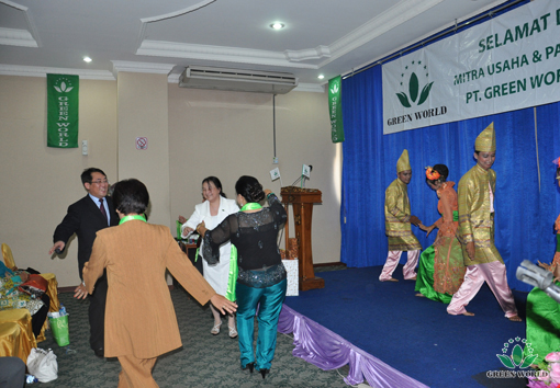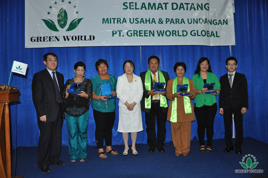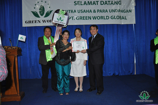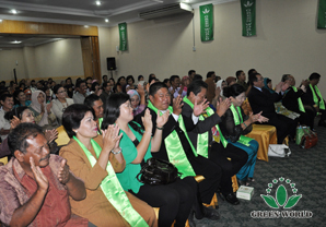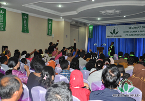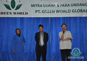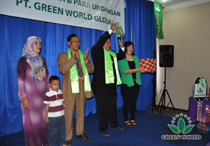 Au cours de la réunion ,beaucoup de concessionaires partagent leur experience réussie de leur cause ,Monsieur Arifuddin a pris un discours ,il a dit que la raison qu’il a participé à Green World , c’est qu’il a bien vu le régime ,les produits et la capacité de l’entreprise . Je crois que je peux réaliser mon rêve ,devenir un triomphateur disposant de la richesse .Quand j’ai recommandé la cause de Green World à mes amis ,ils sont contents de se joindre et s’interesser à l’information des produits de Green World .Monsieur Dedi Kurniawan a dit que Green World est une entreprise forte de la capacité ,elle prend toujours les interêts des concessionnaires en compte ,prend leurs produits en charge . Remercie à Green World de sauver les cosommateurs de la maladie.