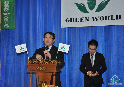D’abord , permettez-moi d’exprimer mes remerciements au nom de Groupe Green World à Monsieur le PDG , Li , et à d’autres invités . Aujourd’hui ,tous les collègues de Green World se réunissent ici .C’est une journée très mémorable , et aussi une réunion historique de l’entreprise de Green World en Indonésie .Dès la fondation de l’entreprise de Green World en Indonésie en 2008 jusqu’a présent , il a déja existé 4 ans ,pendant 4 ans ,l’entreprise a connu des hauts et des bas et des difficultés ,mais elle reste encore debout sur la terre de l’Indonésie . Beaucoup de concessionnaires de Green World ont payé beaucoup de sueur et de travaux pour le développement de l’entreprise . Green World ne vous a pas oublié , il se rappelle toujours ces réalisations que vous avez fait .Ici je vous remercie pour tous les efforts que vous avez fait pour Green World.