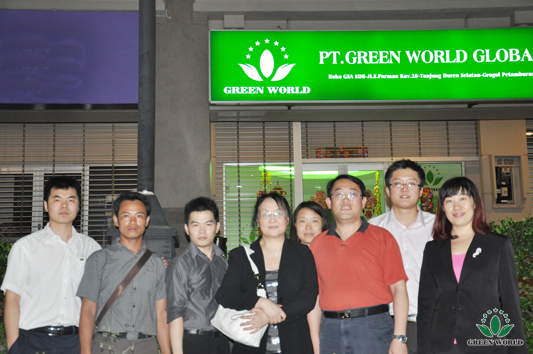 Photo de l'équipe de gestion de la filale indonésienne de Green World avec Président Li