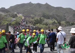 la Grande Muraille ,nos coeurs sont remplis de sens de fierté.Lors de la descente,tout le monde s’entraide,le visage de chacun est plein de sueur.