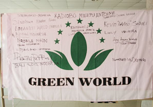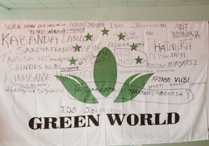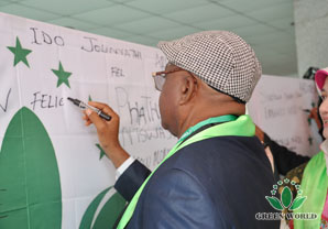 Les distributeurs signent votre nom sur le drapeau de Green World