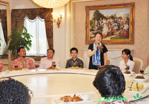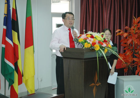 Sur la réunion de bienvenue, Président Li prend les paroles chaleureuses. En tant que représentant de Green World, elle exprime son accueil sur les distributeurs , elle revoit le parcours de développement avec tout le monde, exprime les remerciements sur Président de zone d’Afrique et zone de Asie du Sud-Est, les équipes et tous les amis de Green World. Président Li promet d’assurer la qualité des produits et d’assurer la fourniture des produits.Ces paroles gagnent des applaudissements.