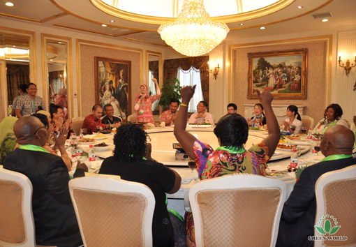 Les distributeurs venant de zone d’Afrique et de la filiale indonésienne prennent la parole, leurs paroles gagnenent des applaudissement, tout le monde apprend à ces distributeurs et suivent Green World.