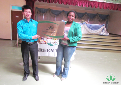 En mai de cette année, directeur Huang a fait l’exploitation du marché à Lesotho Maseru et a permis aux distributeurs que si les distributeurs à Lesotho ont obtenu un bon résultat en 3 mois, il établirait un magasin pour faciliter les distributeurs acheter les produits de Green World.