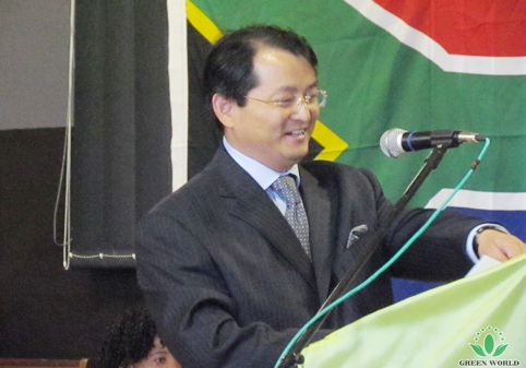 Directeur de la filiale de Green World à East London d’Afrique du Sud Huang Shangren donne son discours d’ouverture