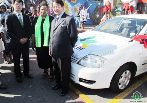 Le 24 septembre 2012, Cap est ensoleillé, Réunion de décernement de la voiture de la première session à Cap et premier anniversaire de la fondation de la filiale de Green World à East London de l’Afrique de Sud se tiennent ici. Vice-président et président de la zone d’Afrique de Green World Zhang Liangjun assiste personnellement à cette réunion après l’achèvement de la réunion à Moscou.