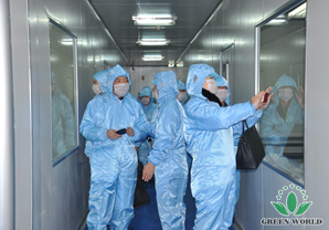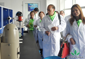 Après, ces distributeurs visitent le laboratoire de recherche, GMP atelier, la salle d’exposition, la notion de 《Equilibre, Circulation, Santé》 et l’équipe de recherche combinée par la recherche et la production gagnent l’affirmation des distributeurs, ils sont convaincus par la capacité de recherche, l’équipement de recherche et l’environnement de production propre. Ils montrent qu’ils tiennent la nouvelle et profonde connaissance et compréhension sur la capacité forte et l’image de marque excellente de Green World à traves cette visite complète.