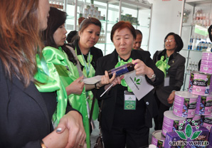 Les produits de soins de santé, les produits quotidiens et les produits de beauté dans la salle d’exposition attirent l’attention des distributeurs , ils se discutent ensemble, les rechercheurs et les traductrices font une introduction détaillée pour laisser ces distributeurs sentir le charme de produits de Green World et pour manifester la capacité de recherche de Green World Groupe.Série de Bleuet et de Tourmaline sont admirées par tout le monde. Il y a beaucoup d’acheteurs sur place.