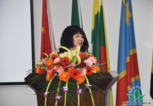 à la place de Présidente Deming Li accueille ces invités avec enthousiasme et organise une grande cérémonie chaleureuse.